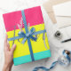 Black and Neon Colour Block Stripe Monogram Name Wrapping Paper