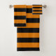 Alternating black and orange horizontal stripes are tiled across this towel set to add style to your bath decor! A uniquely stylish way to start your day!