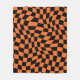 Black And Orange Psychedelic Chequered Groovy Grid Fleece Blanket