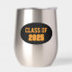 Show off you school colours with this trendy, stainless steel wine tumbler with school colours of black and orange, with graduation class year printed in bold, orange letters on a black, oval design. Great for grads and class reunions as well. Personalise your wine tumbler by editing and replacing class year as desired.