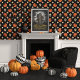 Transform your space with this black and orange skull pumpkin flowers Halloween wallpaper. Featuring a playful yet spooky pattern of orange pumpkins, cream-coloured skulls, and delicate flowers against a black background, this design adds a unique and eerie touch to any room. Perfect for the Halloween season, this wallpaper is ideal for living rooms, bedrooms, or party spaces. Celebrate Halloween with this whimsical and striking design that captures the festive and spooky spirit of the holiday.