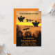 Black and orange Halloween invitation that features spooky and scary, black silhouettes of ghosts, bats and more. Edit information on invitation and replace with your own info.