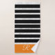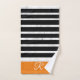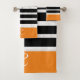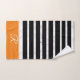 Black and Orange Stripes Marble Style Monogram Bath Towel Set