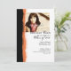 This simple and classic graduation party invitation features black and orange colours with the look of torn paper along one side and a place to put your own senior portrait on the front. Totally customisable text allows you to use this grungy invitation for any event such as birthday parties and other special occasions.