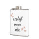 The flask itself is fine. It’s a cheap flask, obviously bought in bulk, however am prepared to overlook that. Given that it is a personalized item, I would have liked to have seen gift boxing instead of the generic packaging. Terrible printing, and/or quality. It’s a cheap, tacky vinyl. It is not cut straight and is also applied in a way that it is overhanging the bottom, causing the glue to catch on items and it will eventually roll and tear, damaging the wrap.