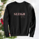 Slay your Christmas events with this minimalist black sweater featuring pink faux glitter typgraphy. Retro and script fonts include the words "Sleigh all day".