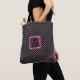 Black and Pink Polka Dot Trendy Monogram Tote Bag