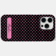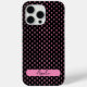 Indulge in the fusion of elegance and personalisation with Black iPhone case embellished with pink polka dots. It’s very easy to customise, with your personal details.