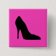 Black shape of a single high-heeled shoe against pretty bright pink background.