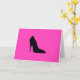 Black shape of a single high-heeled shoe against pretty bright pink background.