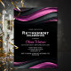 This modern black and pink retirement party invitation is the perfect way to invite your cherished friends, esteemed co-workers, and loved ones to join you in celebrating your transition into a life of leisure. The user-friendly text templates allow you to effortlessly include all the important details. This invitation will set the tone for an evening of reminiscing, laughter, and heartfelt well-wishes. A variety of paper types and corner styles are available for your unique invitations, along with the option to download if you prefer a digital format.