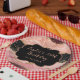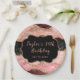 This elegant and glamourous birthday plate features a pink, red and black agate marble background with faux gold glitter accents. The text combines handwritten script and modern sans serif fonts for a classy and sophisticated look. The sequins and distressed texture creates the perfect blend of chic and grunge.