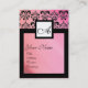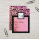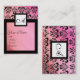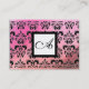 BLACK AND PINK SILK DAMASK SQUARE MONOGRAM BUSINESS CARD