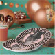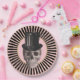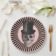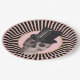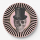 This paper plate features a black and pink radial stripe around the edge with a pink centre and a gold border. A skull wearing a top hat is "dead" centre! Perfect for Halloween or any other spooky gathering.