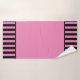 Trendy towel set featuring a black and pink vertical stripe pattern.
