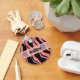 A modern design featuring a black and pink zebra stripe background. A band of blue accents name. Customise as desired.