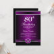 Start organising your celebration with this elegant black and purple 80th birthday party invitation.