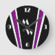 Black And Purple Art Deco Design Monogrammed Round Clock