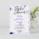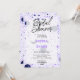The text on the invitation is elegantly presented in a mix of simple print, decorative print, and elaborate script, adding a touch of sophistication and whimsy. The colours of the text, in black and purple, complement the celestial theme perfectly, creating a striking visual contrast that's sure to capture the attention of the guests.