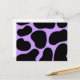 A fun design inspired by cows. This black and purple pattern has abstract black shapes on a purple colour background.