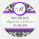 Black and Purple Damask Monogram Wedding Sticker