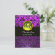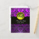 BLACK AND PURPLE DAMASK YELLOW TOPAZ Monogram Announcement Postcard