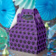 Black dog paw print pattern on purple background. Custom party favour boxes for dog lovers.