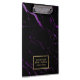 Your name or business name is elegantly displayed over a velvety black and deep purple marble background for a very unique and luxurious aesthetic on this personalised clipboard. The organic marble pattern is recreated in unconventional colours to bring intrigue and mystery to the design. A stylish creation created by 1201AM © 1201AM Design Studio | www.1201am.com