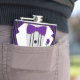 A perfect flask for a perfect wedding day! Purchase a personalised "Black and Purple Pin Striped Tuxedo Flask" for each groomsman in your wedding! A wonderful way to say thank you to your groomsmen or best man! Don't forget one for the groom! A black tuxedo version is available! This grey and black pin stripped tuxedo- has white lapels, a black bow tie and rosebud boutonniere. Very classy hip flask! To see more great products-Please visit my store "The Hungarican Princess" at www.zazzle.com/hungaricanprincess*.