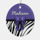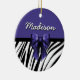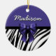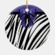 Black and Purple Ribbon Bow Zebra Print Ceramic Ornament