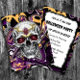 Personalised Halloween Party Invitation. Black and purple sugar skull Halloween postcard invitations.