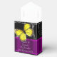 Chic elegant pretty modern alternative black and purple vintage damask and colourful butterflies wedding favour box, easily personalise the bride and grooms names to the templates to create a unique stylish retro custom favour box for your special occasions and celebrations. Visit the PERSONALIZED_ WEDDINGS STORE for matching coordinated wedding sets.