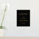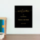 Welcome your guests to your wedding with this elegant black and real foil sign. Ability to change text to any other event. Available only in gold foil. Designed with beautiful modern handwritten calligraphy details. 8" x 10" is our default size, you can choose from a great variety of size options. Also available with white background. "IMPORTANT NOTE: This sign is in premium poster paper style, easy to frame or glue/staple to inexpensive MDF or foam board for display. Part of our "Real Foil Elegant Wedding and Events Signage" collection with a variety of coordinating products available. IF YOU NEED TO MAKE CHANGES TO THE TEXT SIZE OR POSITION PLEASE FOLLOW THESE STEPS: 1- Select "edit using design tool" to access the editor screen. 2- Select the "Front" layer, and delete everything except the "welcome" section (don't worry, you will be adding all back in another step). 3- Go to the "Front Foil" layer, and make all the text size and positioning changes that you like. 4- Once you are happy with all the changes, click on "Edit" on the blue top menu. From there, choose "Select all". 5- Now go to the "Front layer". From "Edit", click on the "Paste" option. This will paste all the text sections from the front foil layer in the same position as they are in the "foil layer". Everything will look on the screen in a silver hue. Now, what's important is that you select each of your text lines, one by one, and make sure to add for their colour (on the menu to the right) this colour hex code: #FECE7E, which is a gold-yellow hue that will enrich the gold foil. It will still look grey on the screen, but the program will add it correctly as a golden hue below the real gold foil. This is to make sure the real gold foil shows up over the black background. Don't worry about the sections looking grey on the editor screen, as the program knows what to do, and this process will enhance the real foil added on top. Once you are sure all text lines and your monogram initials are in the yellow gold hex code, and your sign looks good on the preview images, you can proceed to select the "done" blue top right button and proceed to place your order. Dimensions of sign in demo photo with stand: 18" x 24"