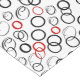 This striking pattern features a lively mix of black and red circles in varying sizes, overlapping and scattered across a crisp white background. The combination of bold solid-lined rings with sketch-style loops creates a sense of movement and energy, while the contrasting red accents add a dramatic pop of colour. The abstract design blends modern minimalism with playful geometry, making it a visually captivating choice for those who love dynamic and artistic patterns.