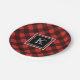 Black and Red Buffalo Check Custom Monogram Paper Plate