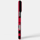 Customise this iPhone 16 pro max case with black and red stripes on the top half and black and red chequered pattern on the bottom half with your name in a modern CAP font in the middle in black on red. It's preppy, trendy and bold - definitely cool!
