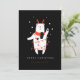This adorable Christmas Card features a cute bear dressed in a cosy scarf with antlers, wrapped in festive lights. Set against a bold black background with cheerful red accents, this playful design is perfect for sending warm holiday wishes to loved ones. The minimalist and fun illustration adds a delightful touch to any holiday celebration.