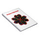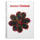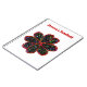 This awesome customisable notebook features a black flower with a red outline filled with multicoloured patterns that make the flower look like it is glittering. The image was created using graphic design and is both beautiful and delicate. There is customisable text at the top of the notebook allowing you to personalise it for yourself or give it as a gift.