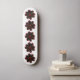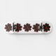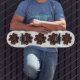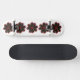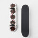 This awesome skateboard features a black flower with a red outline filled with multicoloured patterns that make the flower look like it is glittering. The image was created using graphic design and is both beautiful and delicate.
