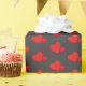 Striking and elegant hearts design gift wrap In red and black. Makes any gift look extra special.