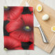 Black and Red Poppies Floral Pattern Kitchen Towel