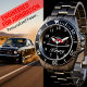 This cool funky modern elegant trendy personal watch. It is a trendy beautiful clock with white numbers. With a Black and red sports car.on a png file. You can change the text and back ground colour to your choice.