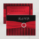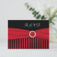 This black and red striped RSVP card has a PRINTED ON red ribbon with a FAUX crystal jewelled brooch on it that matches the wedding invitation shown below. If you require any other matching items, please email your request to niteowlstudio@gmail.com.