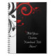 Black background with white and red reverse swirl design giftware. Great as a wedding memento keepsake, or a favour for the wedding party, parents or special guests. Black background with modern white vines and swirls in a contemporary stylish design theme. All Designs Copyright © www.CustomInvitesOnline.com.