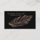 Dramatic and elegant, these beautiful business cards feature an ethereal feather design in rose gold faux glitter on a black background (NOTE: glitter is a printed image), along with two lines of optional custom text for your name and title/company. Customise the back with your full contact details in a mix of simple, professional block and italic typefaces.