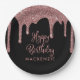 Black and Rose Gold Sparkle Glitter Drips Birthday Paper Plate