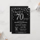 70th Birthday Invitation with Black and Silver Glitter Diamond Background. Silver Confetti. Adult Birthday. Male Men or Women Birthday. For further customisation, please click the "Customise it" button and use our design tool to modify this template.