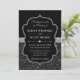 This striking wedding invitation design features a refined black and silver Art Deco style with intricate geometric textures and elegant symmetry. A decorative vintage frame anchors the layout, while metallic-inspired silver accents and patterned detailing evoke the glamour of the Jazz Age. The layered design creates depth and visual richness without overwhelming the clean, formal typography.