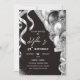 Celebrate your special day in style with this Black and Silver Birthday Party Invitation! This stunning invitation features a bunch of glittery, sparkly balloons and ribbons in shades of black and silver, creating a chic and sophisticated look that is perfect for any birthday celebration.