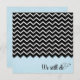 black and silver chevron design on blue invitation